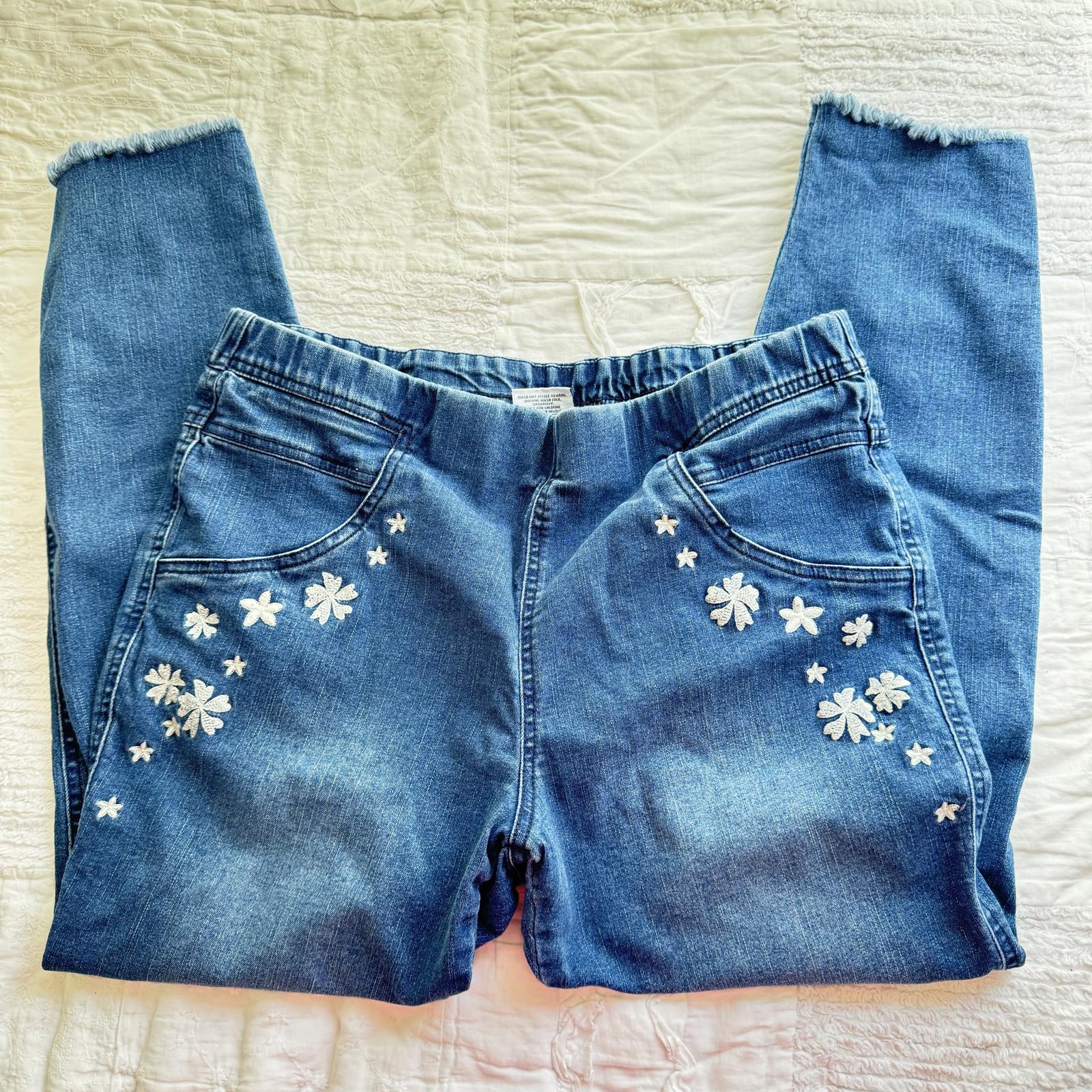 Anna and Ava Chic Floral Embroidered Denim Jeans - Ankle Length Frayed Hem XL