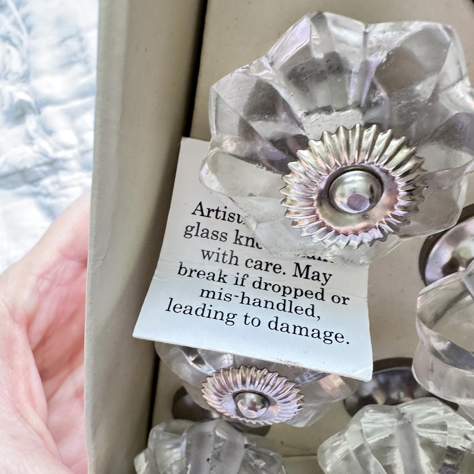 Casa Decor Glass Flower Drawer Pulls Set of 6 Clear Silver Handmade Cab. Knobs