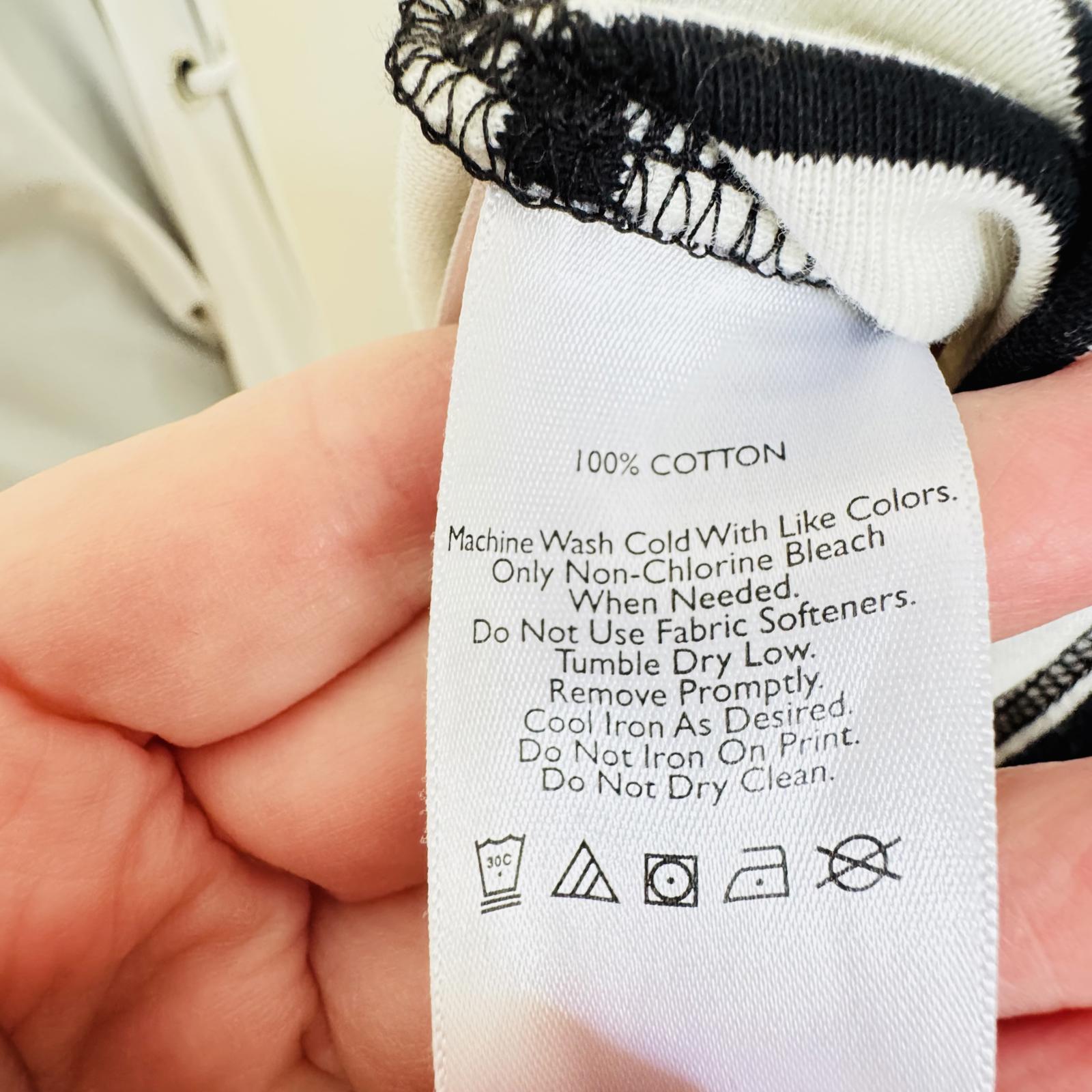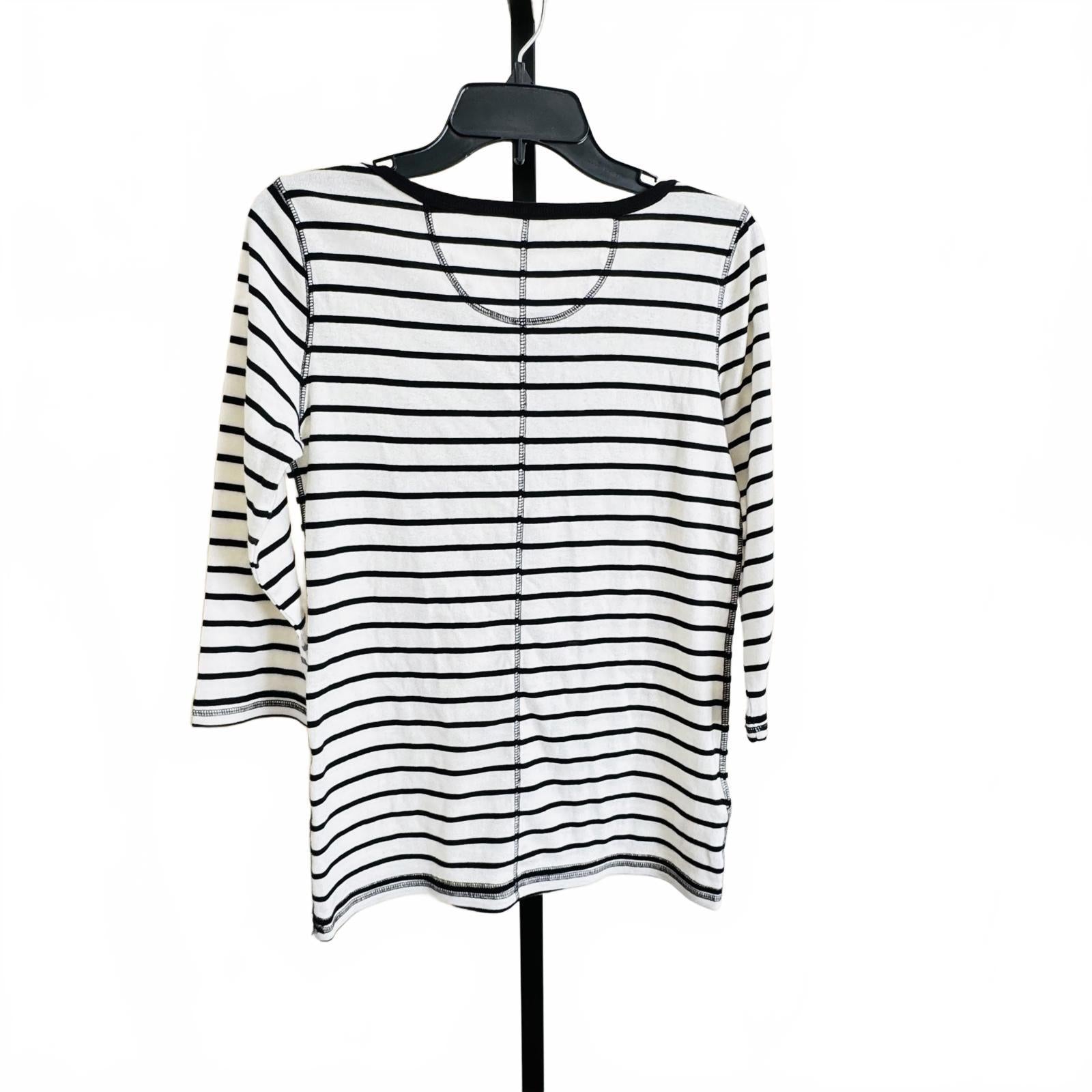 Eddie Bauer Striped Shirt Women’s M White Black 3/4 Sleeve Cotton Henley Tee Top