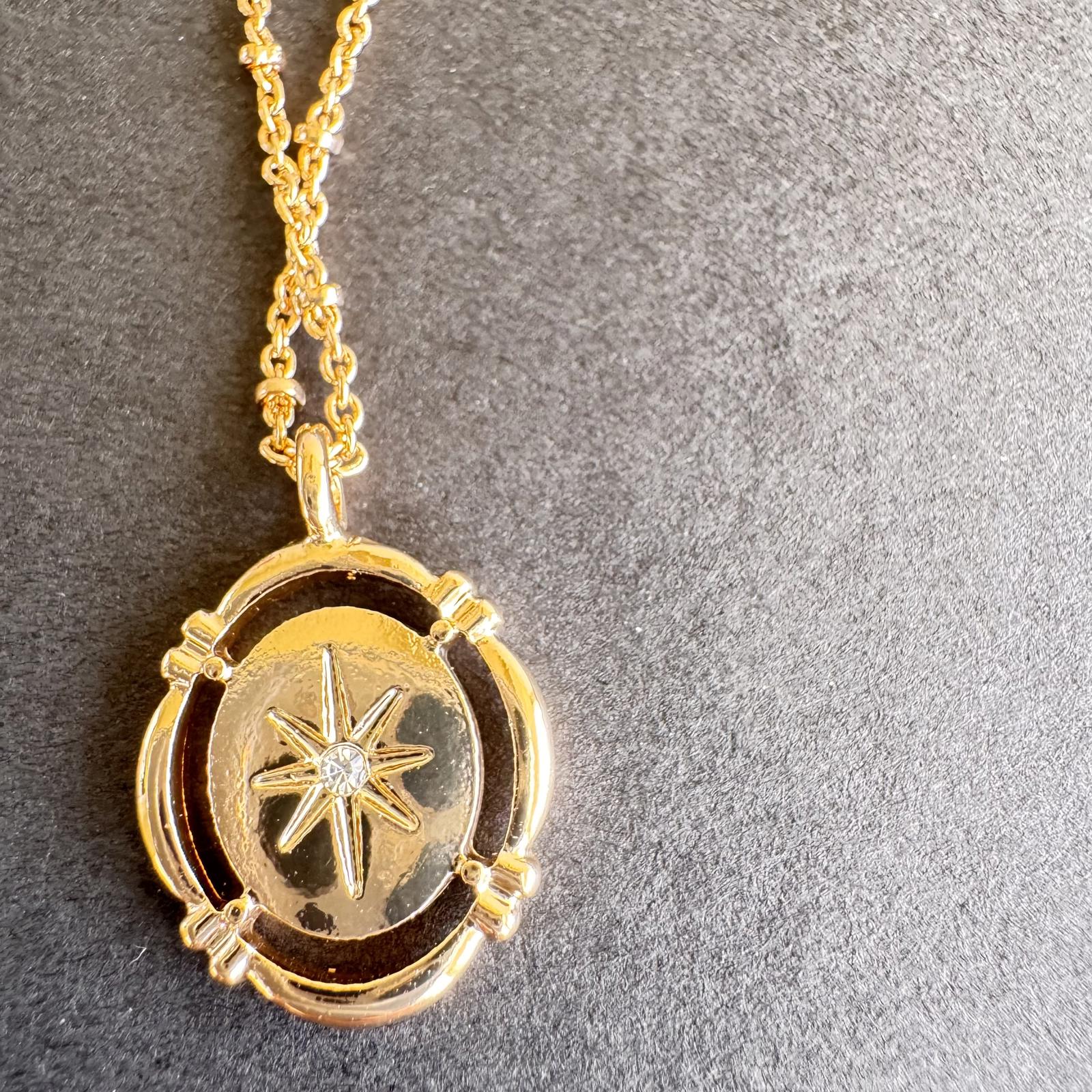 Discover this stunning pendant necklace that combines classic elegance with personalized charm. Featuring a beautifully crafted oval pendant, the piece showcases a monogrammed 'K' on one side and a radiant star design on the other. Ideal for layering or wearing solo, this necklace enhances any outfit.