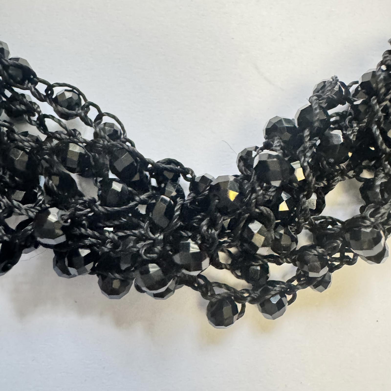 Elevate your style with this stunning multi-layer black beaded necklace. Crafted with intricate beading techniques, this necklace features multiple strands of glossy black beads intricately woven onto a durable cord. Perfect for both casual and formal occasions, it adds a touch of elegance to any outfit. Key features include: