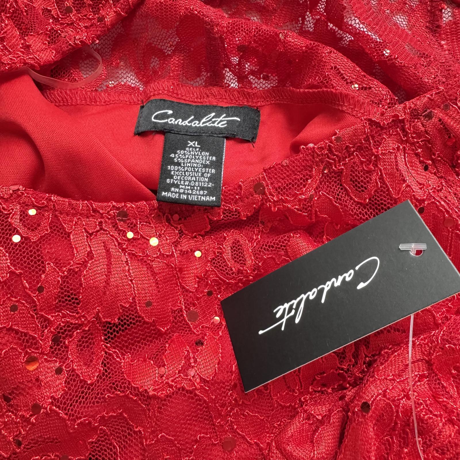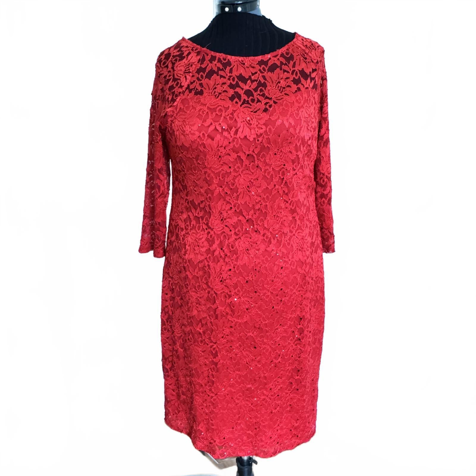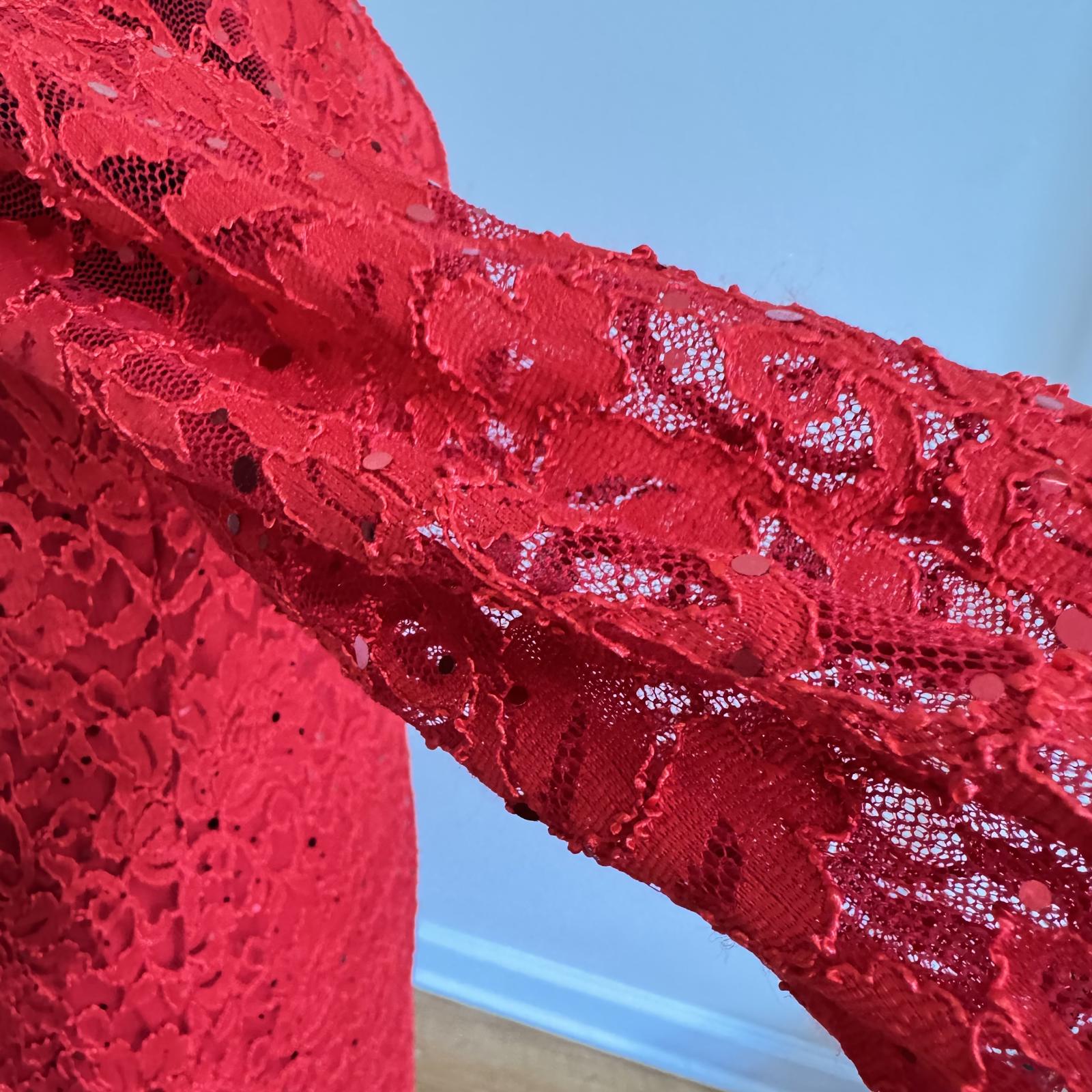 Elegant Red Lace Sparkly Cocktail Dress with 3/4 Lace Sleeves Size XL