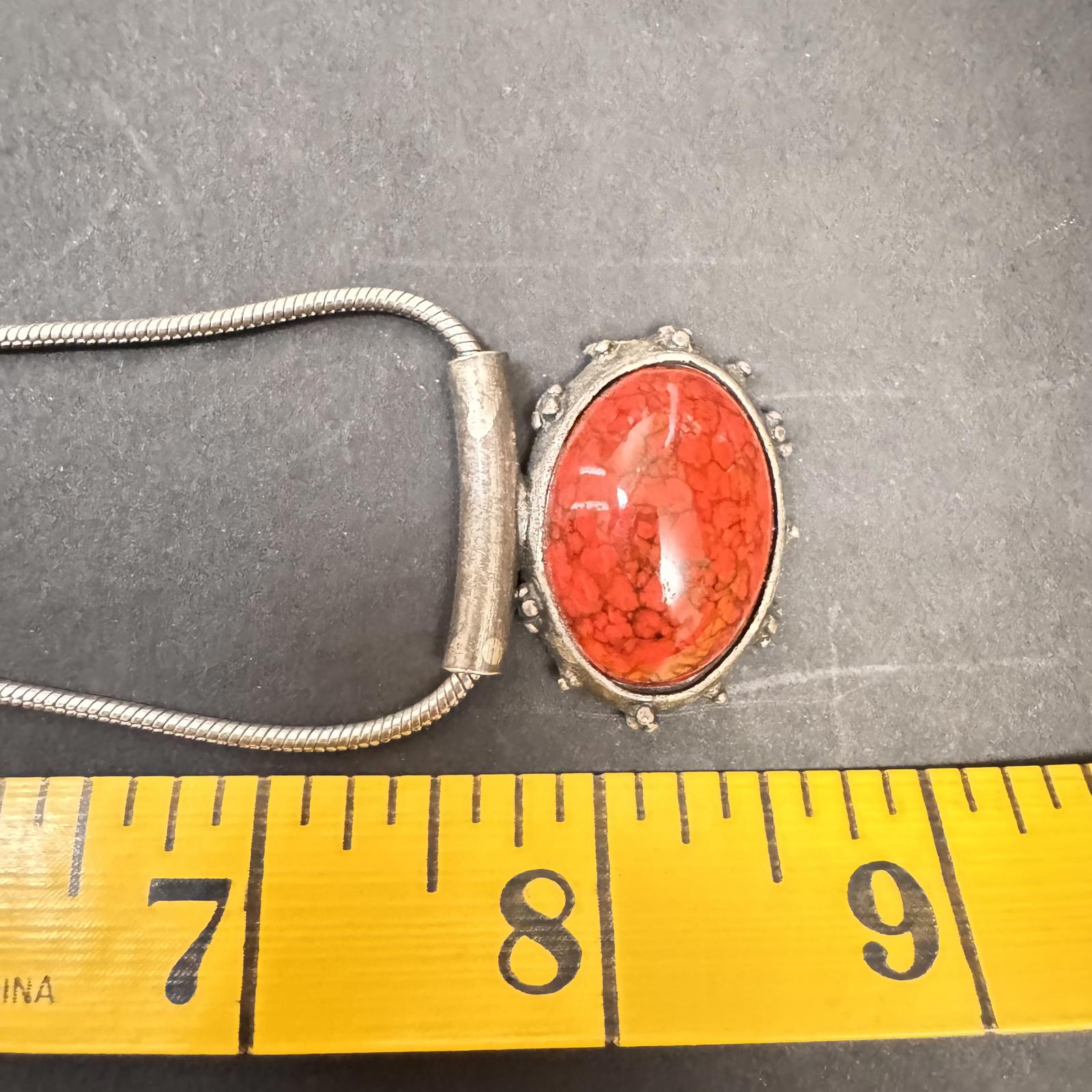 Elevate your style with this exquisite pendant necklace featuring a vibrant red stone. Crafted with attention to detail, the necklace showcases a beautifully polished oval red stone, accented by intricate silver detailing. The sleek chain adds elegance, making it perfect for any occasion.