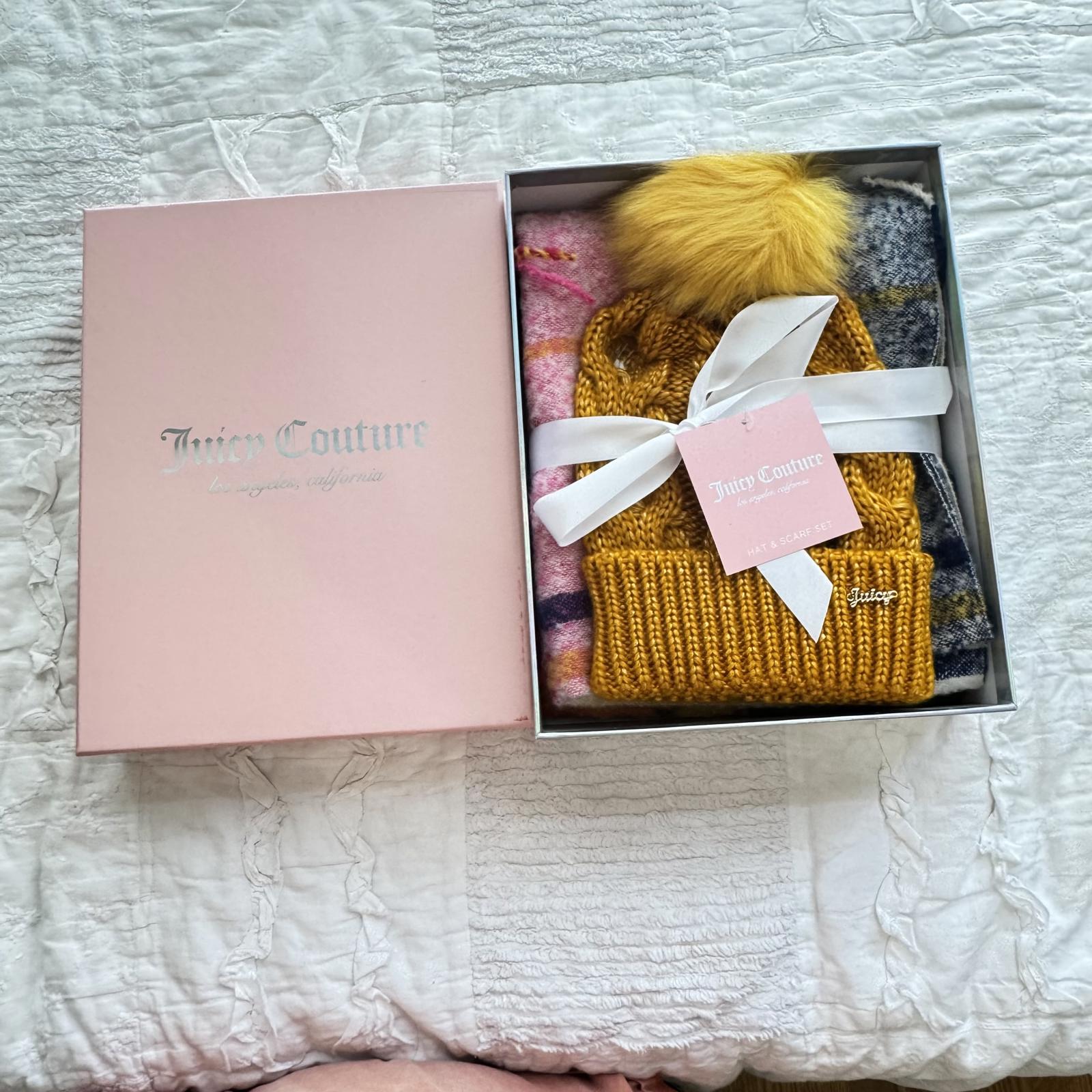 Juicy Couture Yellow Pink and Purple Beanie and Scarf Set Gift Set NWT