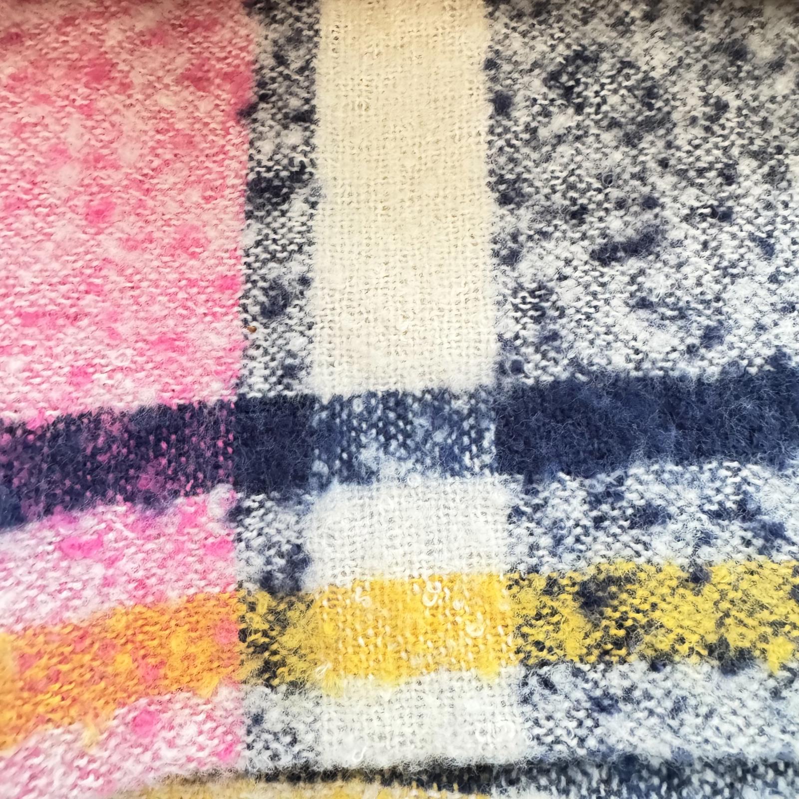 Stay warm and stylish with the Juicy Couture Hat & Scarf Set, perfect for the colder months. This set includes a cozy yellow knit beanie topped with a playful faux fur pom-pom and a chic plaid scarf. The beanie features a delicate Juicy logo, showcasing the brand's signature flair. The scarf is designed with vibrant colors, combining pink, navy, and yellow hues to add a pop of color to any winter outfit. Great for gifting or treating yourself, this set is both functional and fashionable.