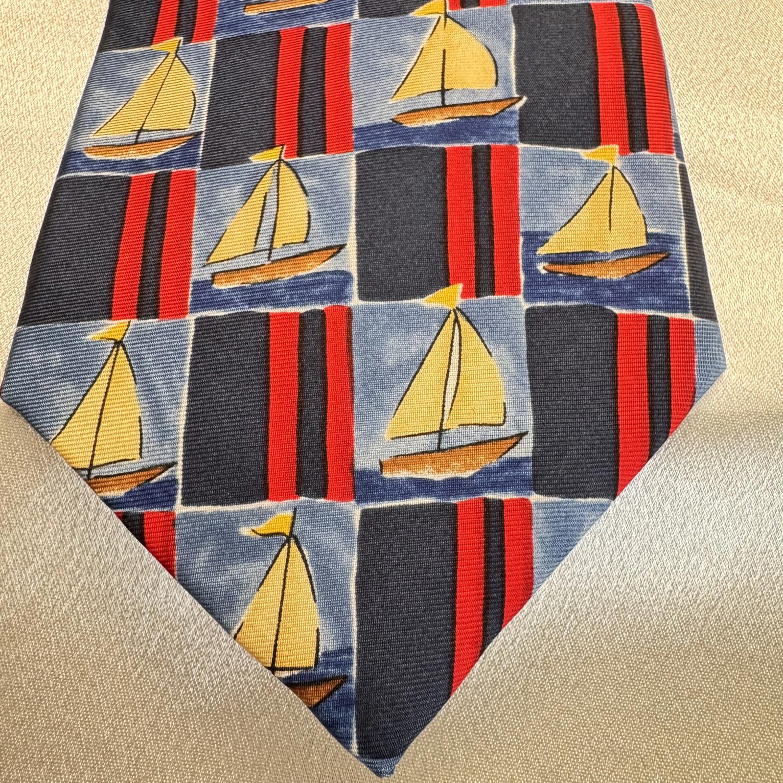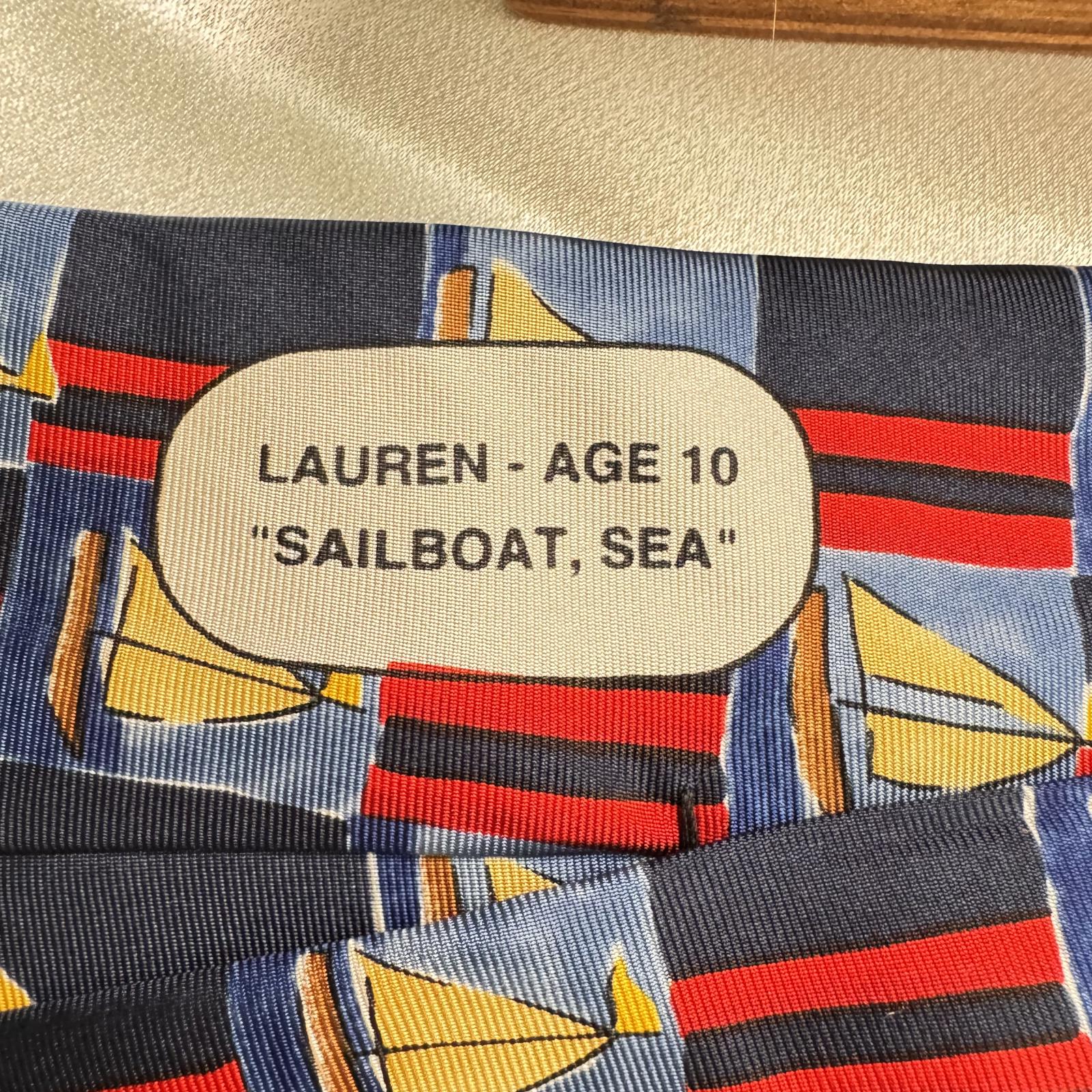 Elevate your child's wardrobe with this charming sailboat design tie! Crafted from 100% silk, it boasts a vibrant nautical theme featuring playful sailboats set against a navy and red striped background. Perfect for special occasions or adding a touch of style to everyday attire. Key features include:
