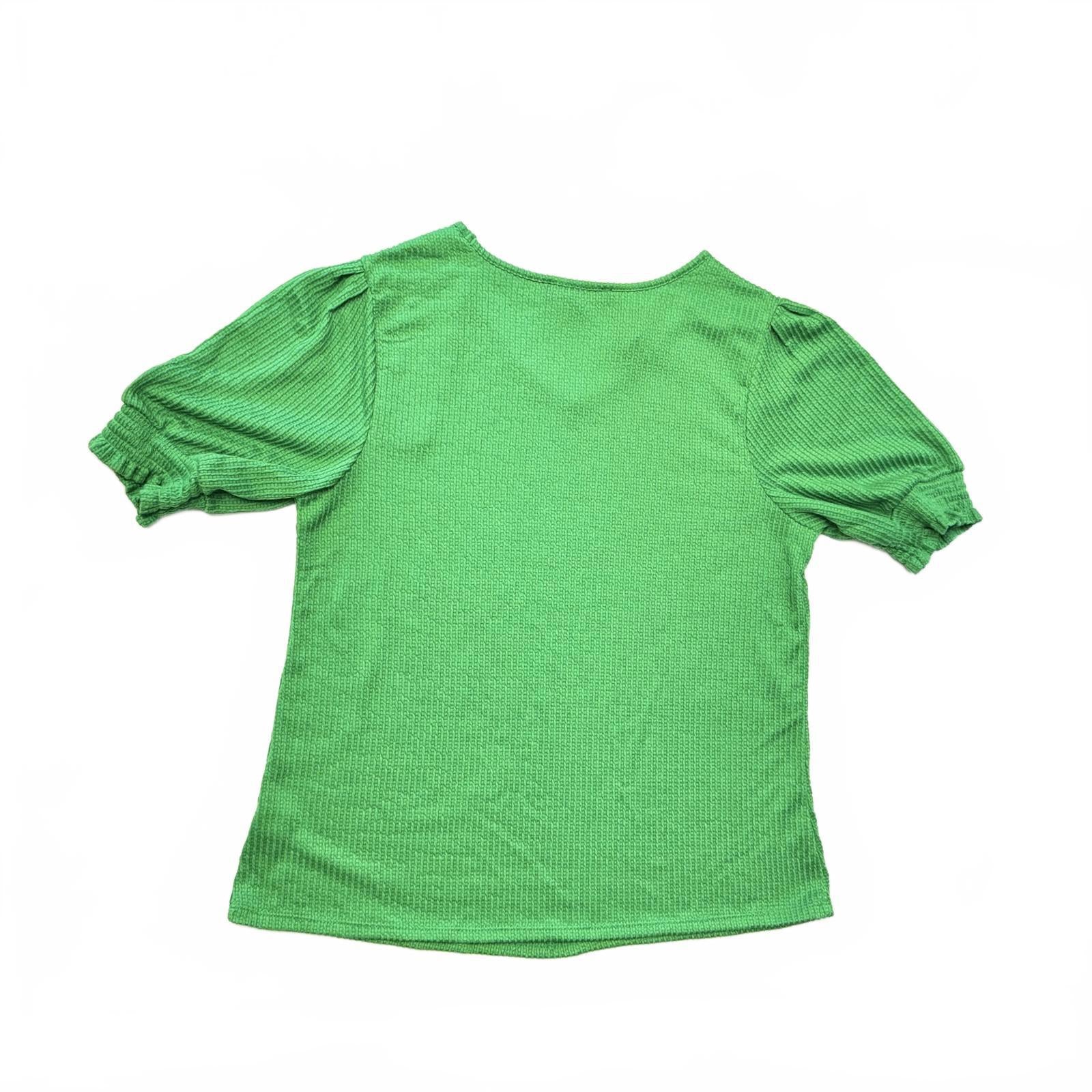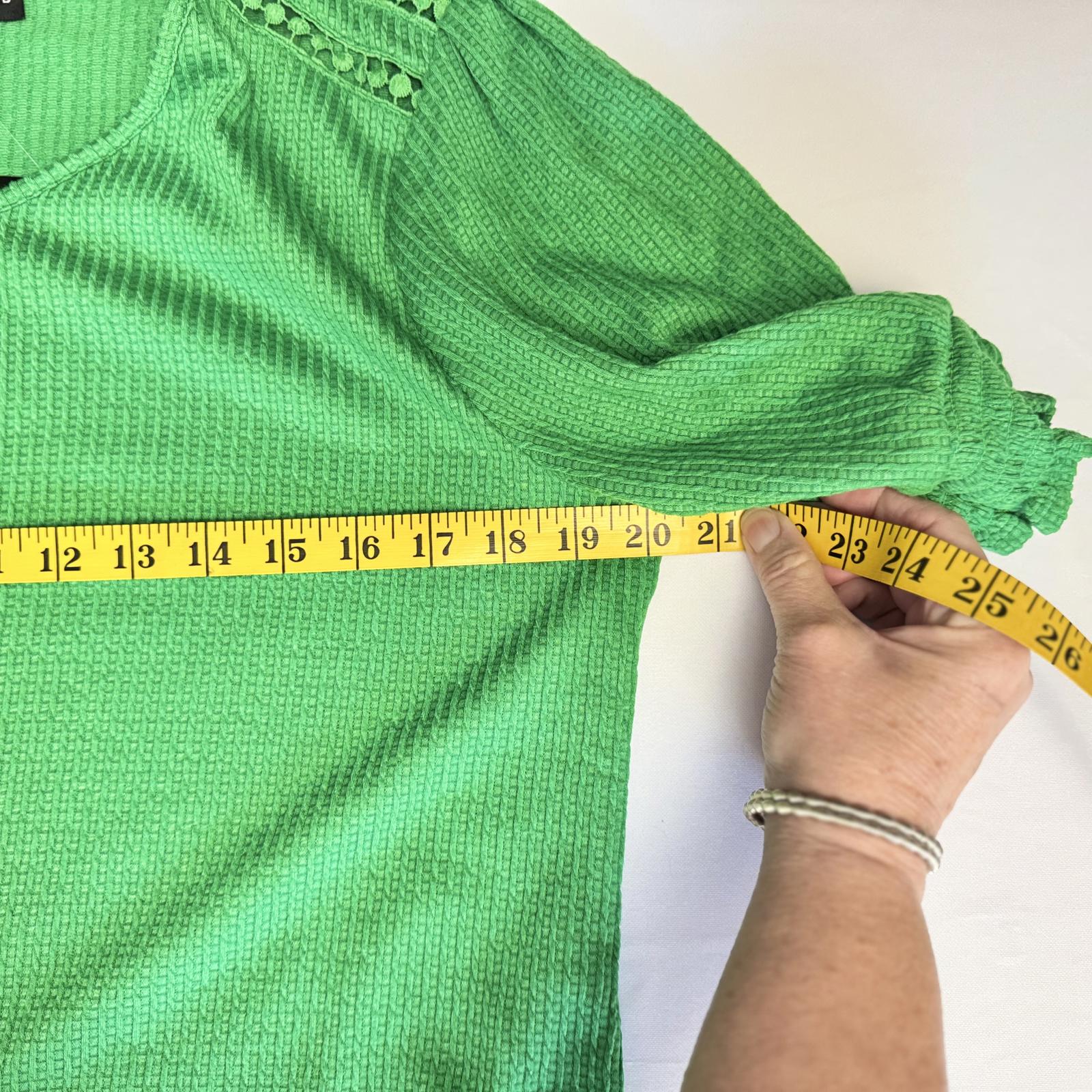 NWT Fab & David Green Puff Sleeve Blouse Women’s Top Crochet Trim Size XL