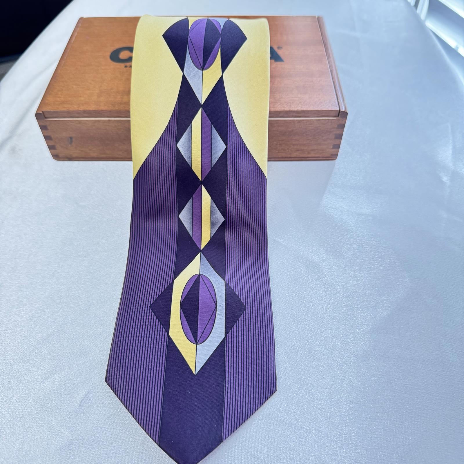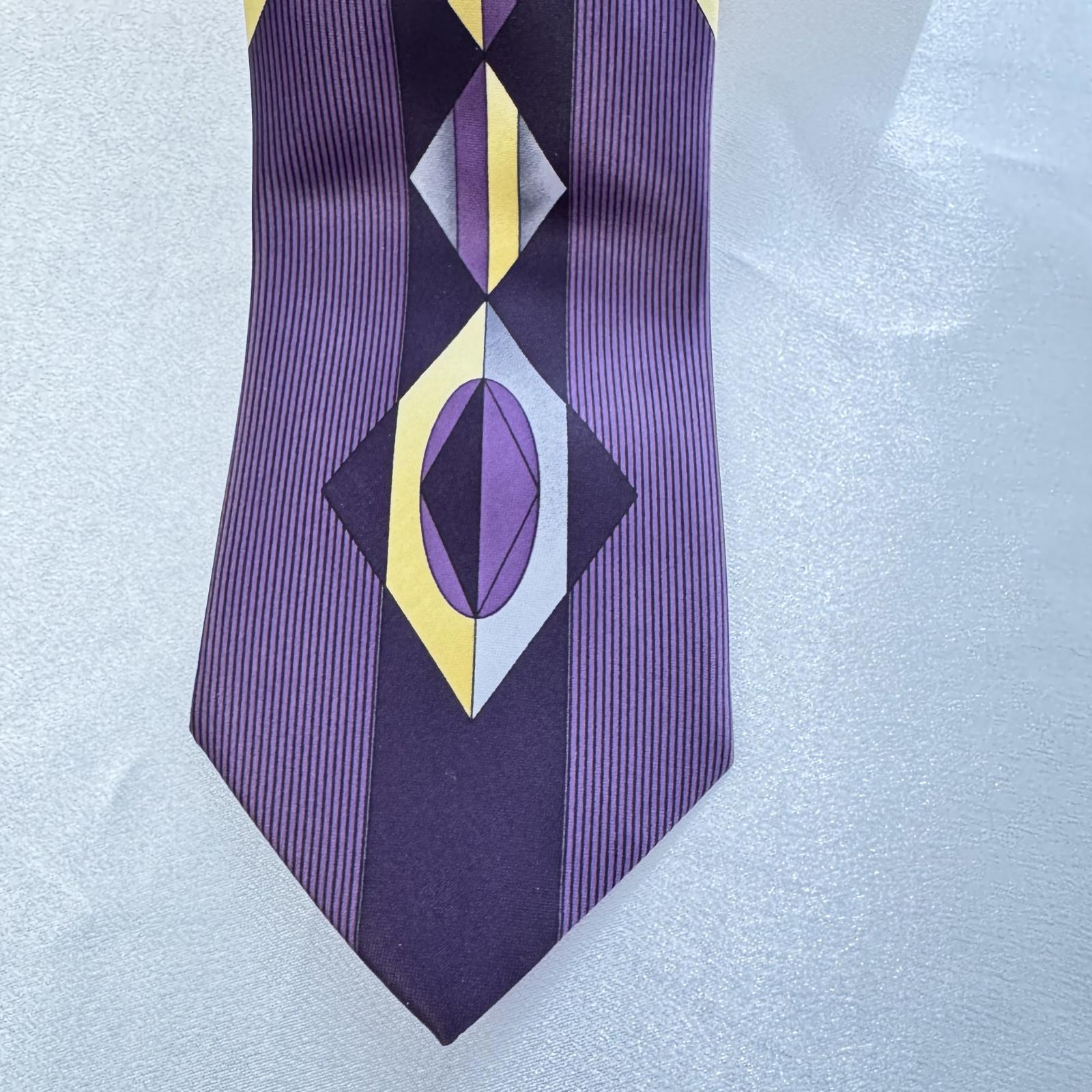 Romario Manzini Geometric Men's Tie in Purple and Yellow Mid Century Modern