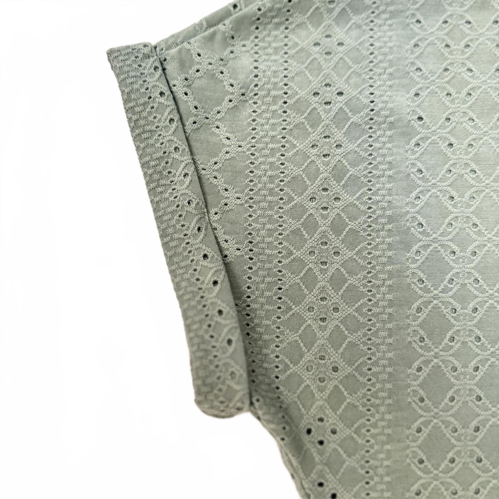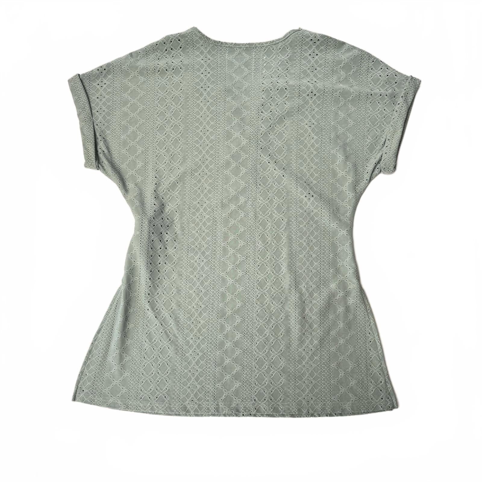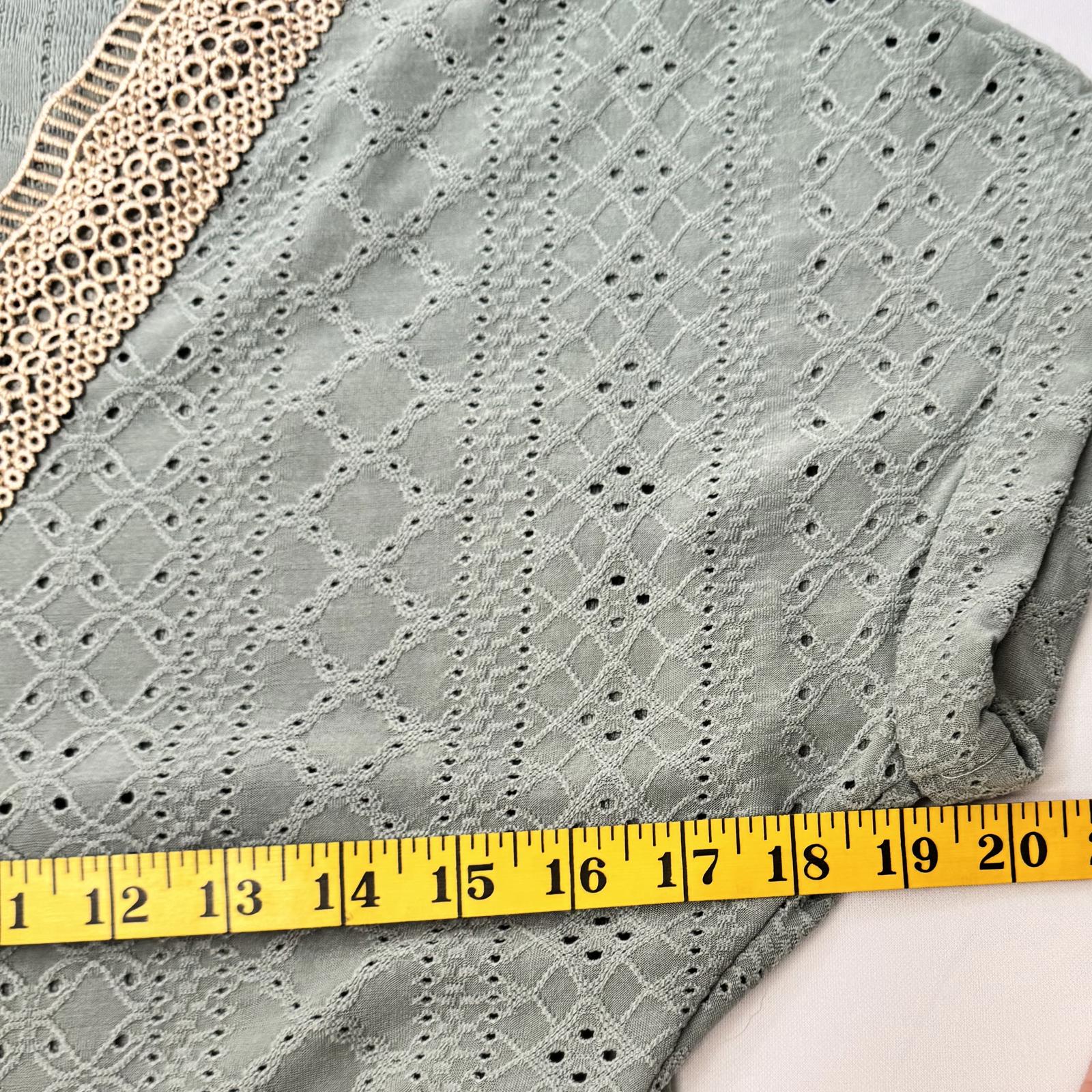 SHEIN Mint Green Blouse Women’s L Crochet Lace V-Neck Short Sleeve Eyelet Top