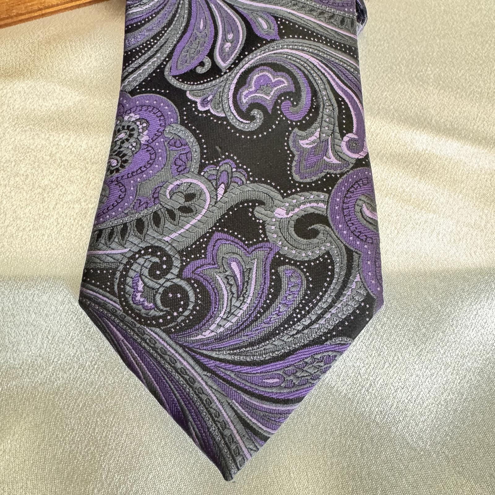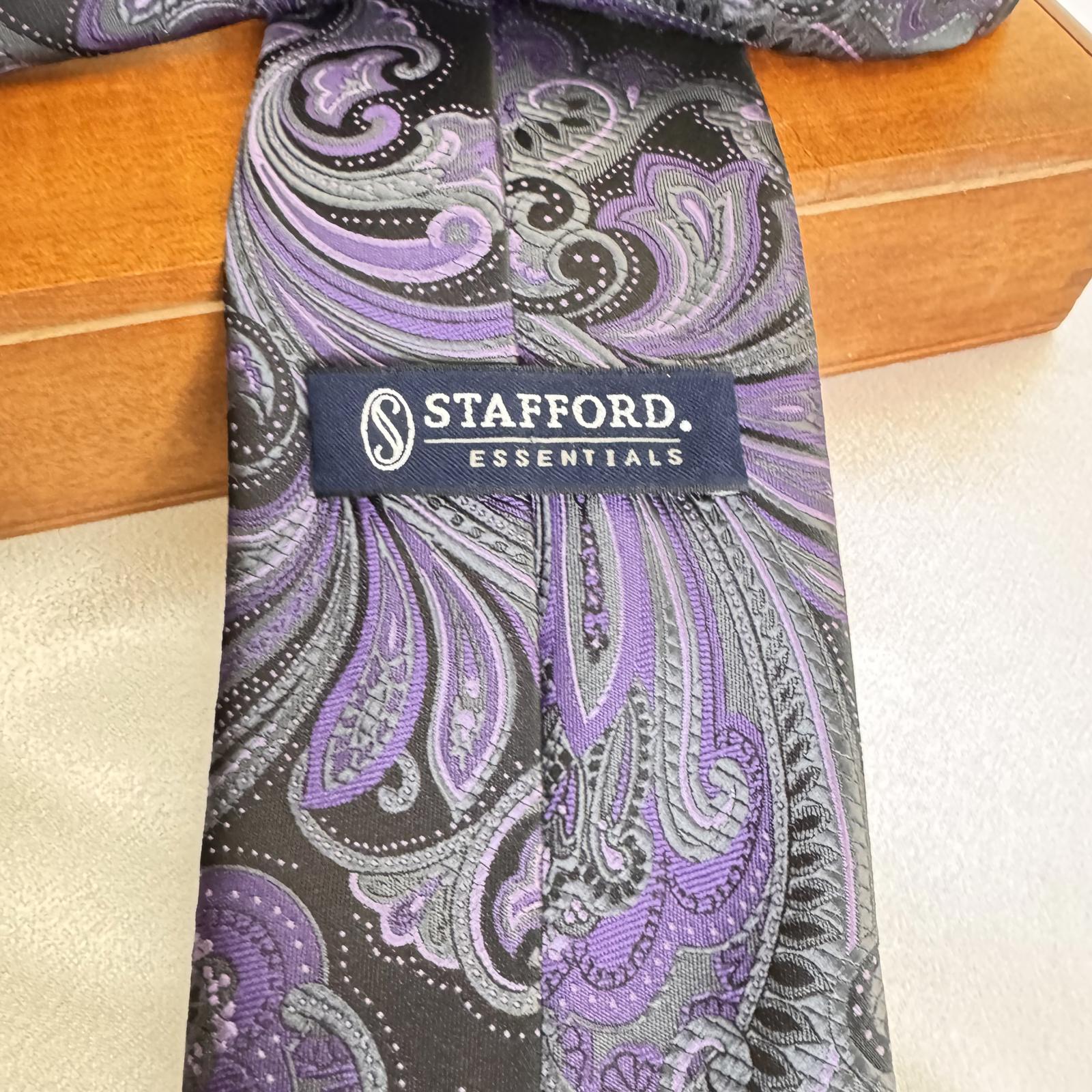 Sharp-looking purple paisley tie from Stafford Essentials. Great for weddings, business events, or adding flair to a navy suit.