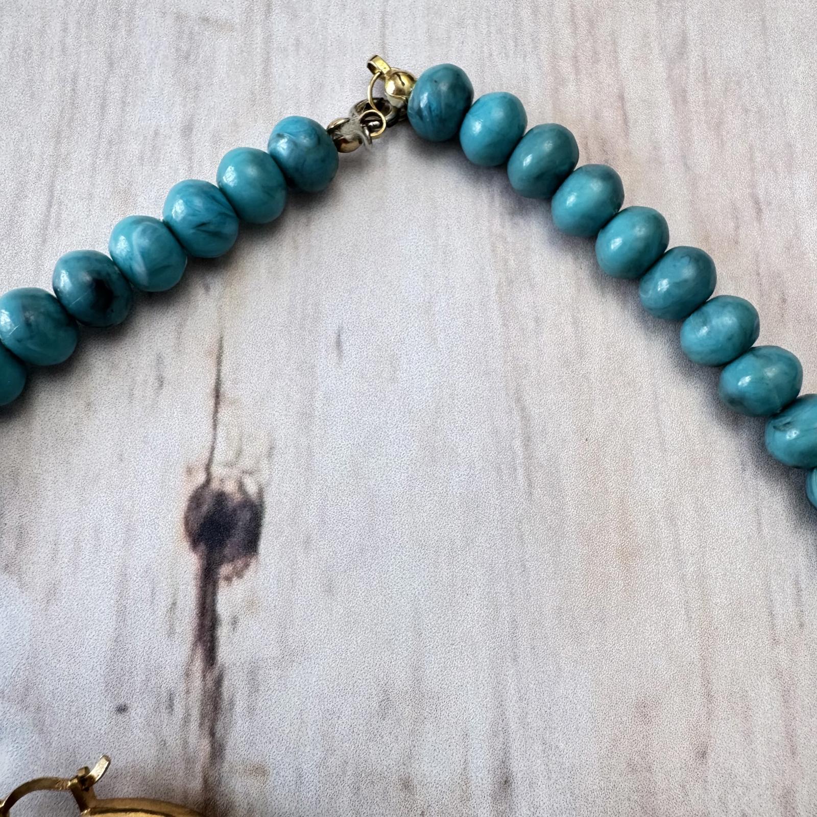 Stunning Faux Turquoise Necklace with Coordinating Gold Tone Hoop Earrings Set