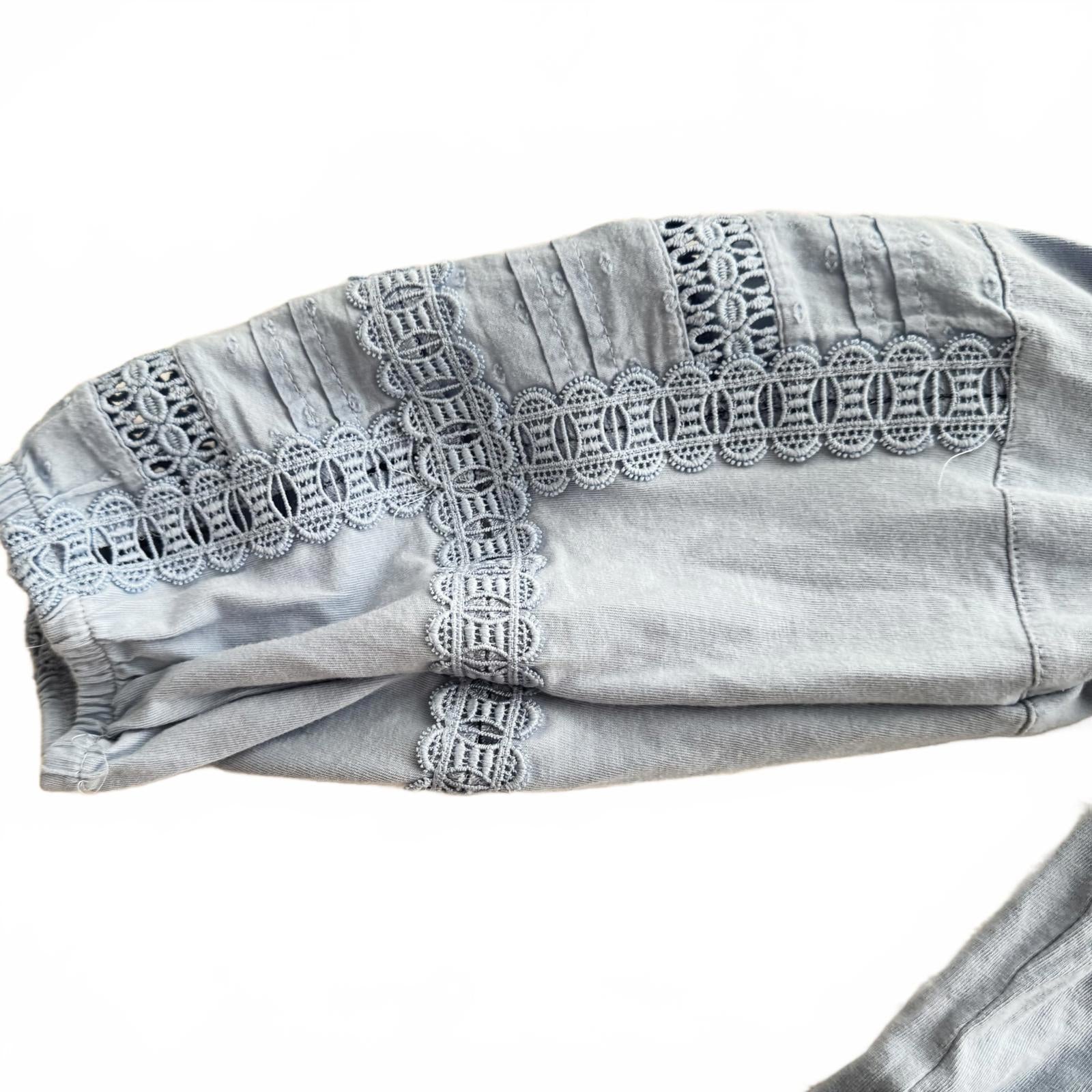 Talbots Petite Cotton Light Blue Top with Lace Details Women's Size MP